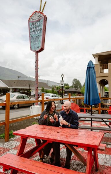 After this adventure, we’ll take one more stop for the morning – for ice cream! We’ll make a stop at Scott’s Dairy Freeze in downtown North Bend for some soft serve or milkshakes (and a burger with fries if you’ve worked up a full appetite!). You’ll get to relax together, enjoying some tasty food at a sweet, local spot before our mid-day break.