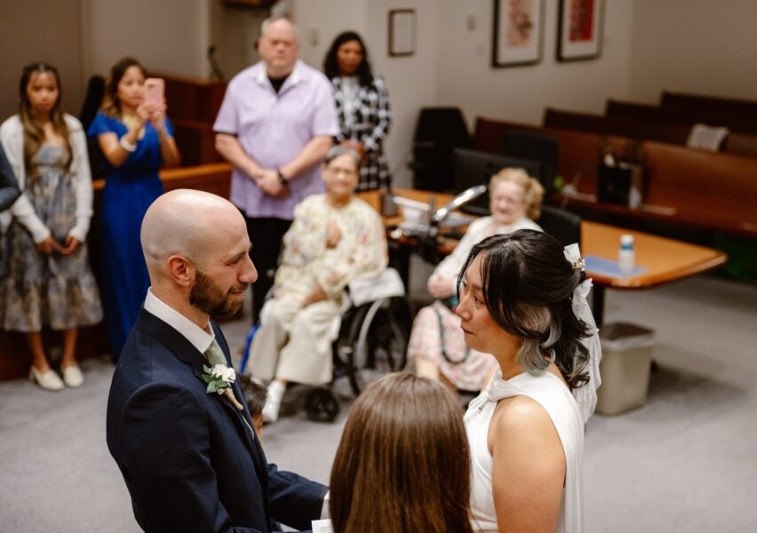Your friends and family will gather with you at a local courthouse where you’ll exchange vows and you’ll finally be pronounced married! After your ceremony, we’ll take some time for a few portraits with your loved ones. Then, everyone will head out, while you two stay behind for a few more moments to yourselves – your first moments alone as an officially married couple. I’ll document a few candid moments between you, as you take this time to absorb the fact you just got married (!). Then, we’ll say goodbye, as you head off to rejoin your loved ones for a celebratory meal to end the most perfect day.