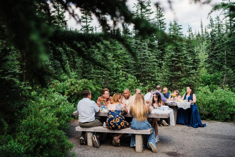 After the ceremony, you’ll refuel with a picnic you’ve brought to the mountain of delicious fancy sandwiches, enjoying food, laughter, and connection while surrounded by alpine scenery that takes your breath away.