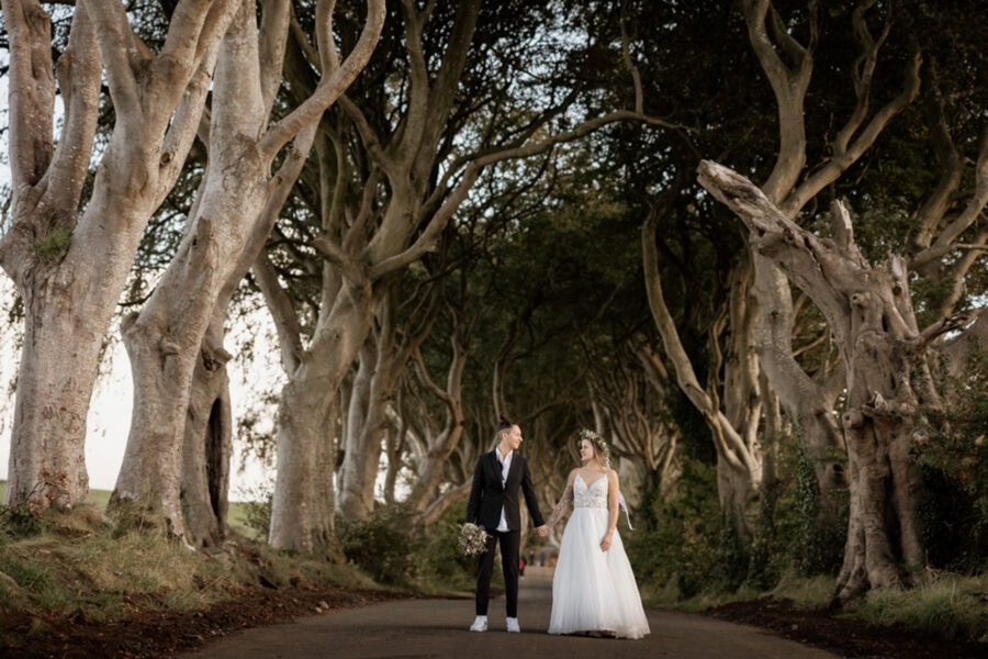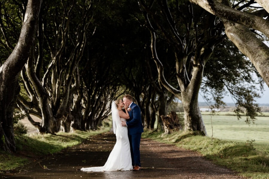 Your day begins with relaxed morning preparations and styling, followed by an intimate ceremony within sight of the ancient stone walls. After your vows, we’ll journey along the wild Causeway Coast — exploring secret coves, windswept cliffs, and cinematic landscapes. From the haunting beauty of Ballintoy Harbour to the iconic Dark Hedges, the cliffside ruins of Dunseverick Castle, and finally the golden glow of sunset at the Giant’s Causeway, where we’ll finish your day with a romantic lantern-lit shoot by the sea — every stop becomes part of your love story.