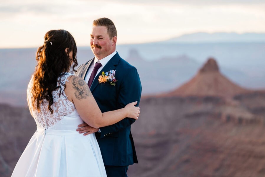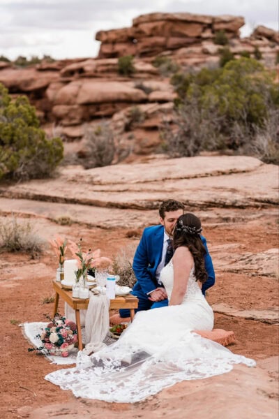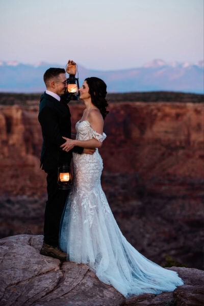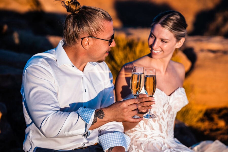 As the sky shifts from warm orange to cool blue, you can celebrate in whatever way feels most like you. Tuck into a charcuterie picnic, cut a small cake, share a first dance with no one else around, or enjoy pizza and beers overlooking the canyon as the light fades.