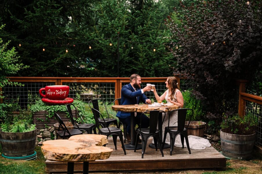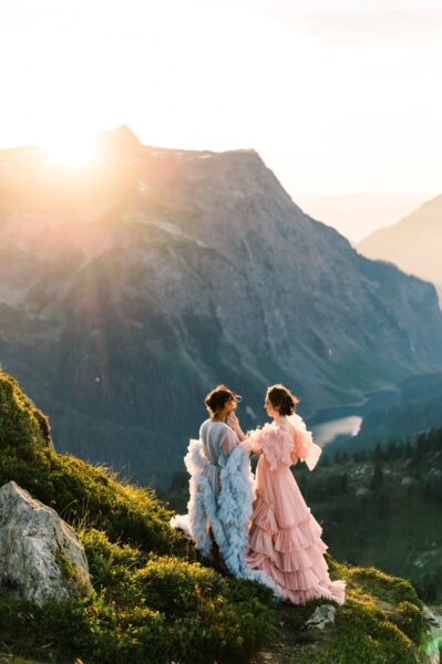 Once we’ve meandered through the valley and had our fill of those views, we’ll start heading down the mountain with a stop at Picture Lake, carving out a few minutes for a first dance on your private boardwalk. Afterwards, we’ll swing by Wake ‘N Bakery for coffee and pastries before you head back to your cabin for a cozy midday nap.Once you’ve woken back up feeling refreshed and ready for part ii, I’ll join you at your cabin for some re-getting ready photos! This is where the two of you can revel in the comfort of your private space and I’ll photograph some details that will round out your final gallery with a sense of place– photos that show your vow books or postcards of Mt. Baker or a map of the area. Then, we’ll head up an adventurous forest road to get to one of my favorite places in the world– the fire lookout I hiked to on my own elopement day! We’ll enjoy a moderate hike up, soaking in the views of the lakes beneath us and the mountains around us along the way. Once we get to the top, we’ll soak in the 360º panoramic views and enjoy taking portraits during golden hour.
