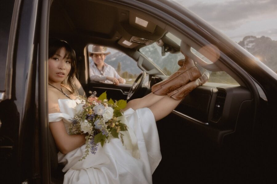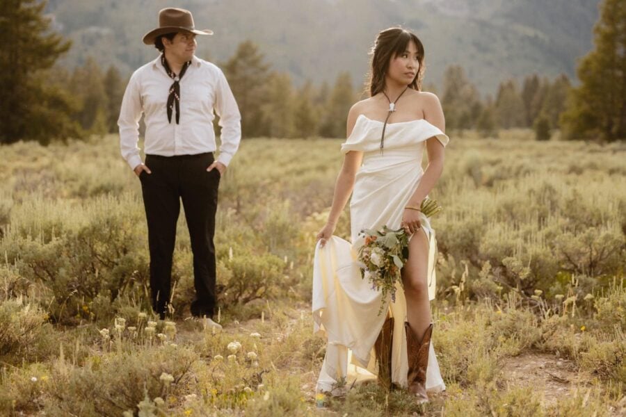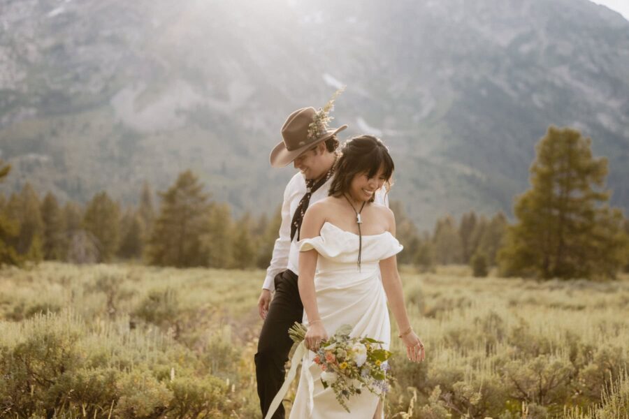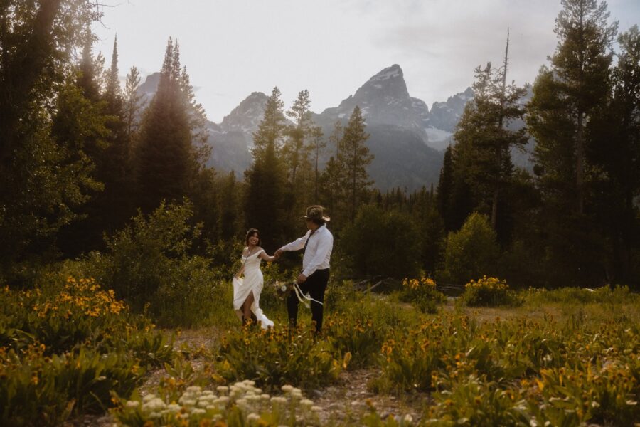 After your “I do’s,” we’ll adventure to a few epic locations chosen just for you — golden meadows, pine-lined overlooks, and wide-open views where the sun spills across the peaks. These are the in-between moments — hand-in-hand, wind in your hair, Tetons on fire with light — where the photos become art and your story shines.