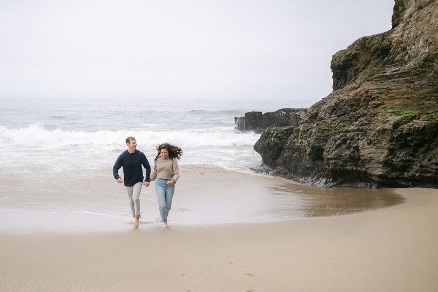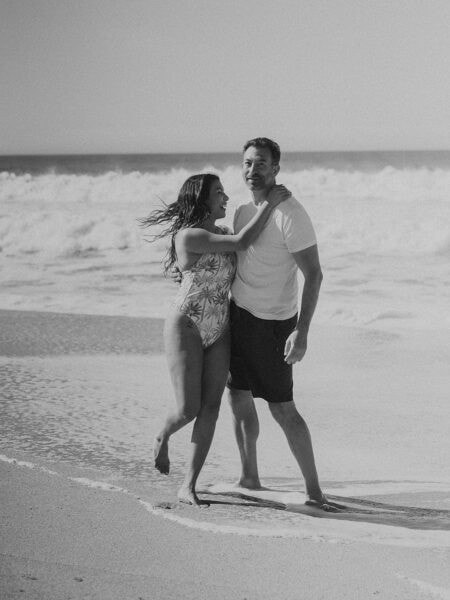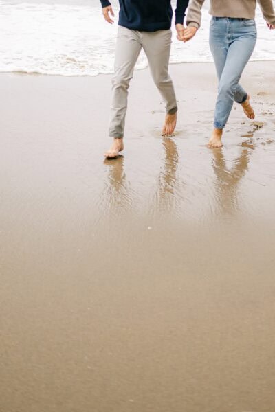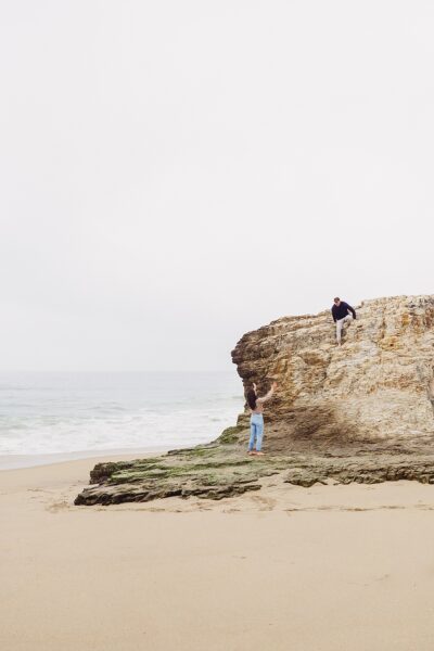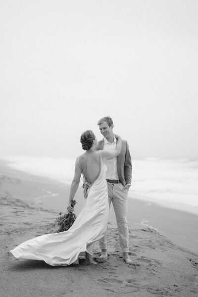 After drying off and warming up, you’ll have the morning to rest and recharge before getting ready. I’ll capture the small, meaningful moments, from slipping into attire to hand-writing your vows, before we head back out for your ceremony. As the sun lowers toward the horizon, you’ll exchange vows right on the sand at Shark Fin Cove, with the Pacific waves behind you and the cliffs glowing in soft evening light. This secluded, rugged backdrop sets the stage for vows that feel wild, intimate, and unforgettable.