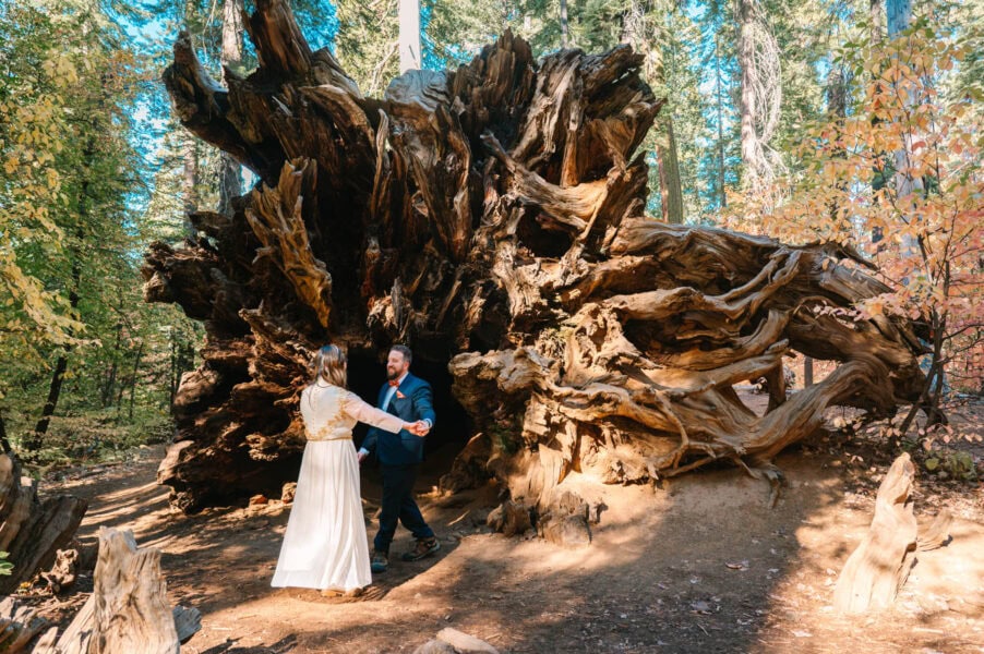 The following morning, we’ll meet at Tuolumne Grove, where a hike takes us into a stand of ancient sequoias. You’ll walk among these giants—some of the oldest living beings on earth—and pass through a hollowed-out tree tunnel for portraits that showcase both your love and the sheer scale of the forest.