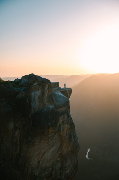 In the middle of the day, you’ll take a break to rest or explore on your own. Then, as evening approaches, we’ll meet again for the finale: a sunset hike to Taft Point. The forested trail leads to dramatic cliffs overlooking Yosemite Valley. Here, you’ll sip champagne and watch the sky shift into oranges, pinks, and purples, ending the day on the edge of the world.