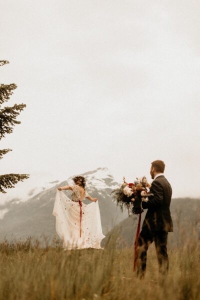 As the light begins to soften, we’ll slip away into the nearby forest for portraits of just the two of you. Beneath towering evergreens, surrounded by filtered golden light and mossy ground, we’ll create romantic, intimate images that feel both adventurous and deeply personal. The contrast of the turquoise lake and the lush forest gives you the best of both worlds — open mountain views and cozy woodland magic.