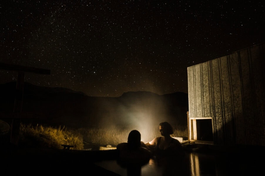 After your ceremony, it’s a blue-hour hot springs soak at the base of the glacial-carved mountains as the stars appear in the sky above you. End the day by stargazing out on the playa and capturing the night sky in your images, with your silhouettes lit up by handheld hurricane lanterns.