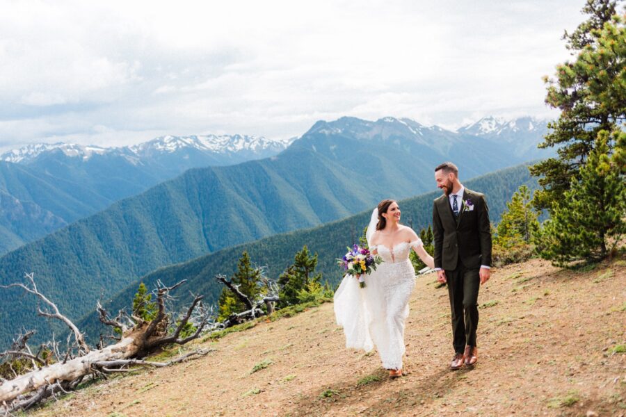 We’ll then drive up to Hurricane Ridge for your ceremony. You’ll watch the world fly by you as you climb higher and higher until it feels like you’re on top of the world. Take in the view of the rolling peaks of the Olympic Range and the crisp alpine air before you say your vows. Maybe a deer will pop out to say hi! We’ll explore and take a few portraits up here before heading down the mountain!