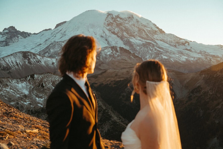 Day two is reserved for just the two of you. We begin the morning at your mountain cabin with quiet getting-ready moments before heading toward Mount Rainier. This day is slower and more intimate, focused on exploration and time together. We spend the day moving through mountain landscapes, hiking trails, and open viewpoints, with time set aside for private vows away from crowds. A fire lookout becomes a natural stopping point, offering wide views and a sense of stillness as the day unfolds.