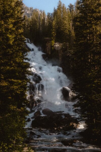 Next, we’ll make our way to Jenny Lake for a breakfast picnic by the water — locally roasted coffee, warm pastries, and views that will stay with you forever. Then we’ll board a boat across the lake and hike to Hidden Falls and Inspiration Point, capturing portraits in the crisp alpine air, surrounded by towering pines and granite cliffs.