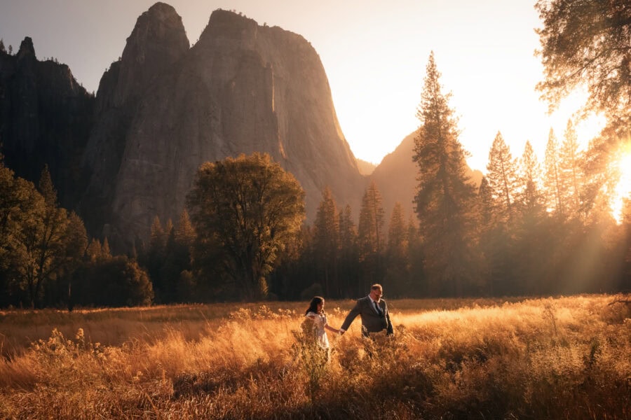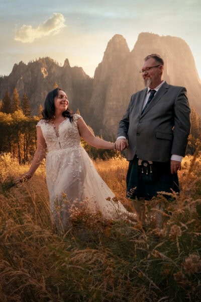 We begin by slowing time itself, guiding you into the cathedral of the Mariposa Grove. Here, amidst the cinnamon-colored giants that have stood since the fall of Rome, you share your first look. The silence of the sequoias grounds you, stripping away the noise of the modern world so that when we ascend to Glacier Point for your ceremony, you are fully present. As the sun sets, setting the High Sierra ablaze with alpenglow, you speak your vows on the edge of the world. We stand guard over the light and the logistics, ensuring that your first dance—lit by lanterns and the rising stars—feels like a private moment suspended in the cosmos, before we retreat to the valley to rest. Buzzing with the energy of the day, you will retire for your first night as a married couple, and we will see you the next day for your honeylopement adventure!