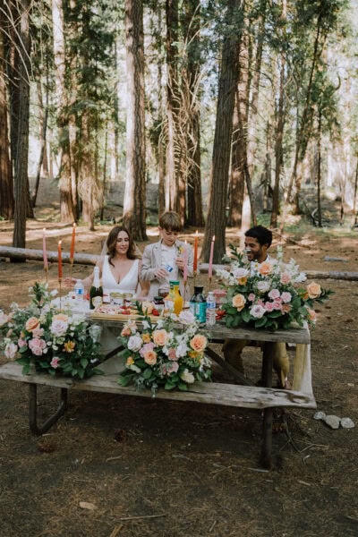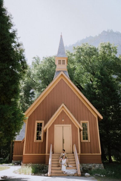 Afterward, we’ll wander to the Church Bowl picnic area, a quiet green near the historic Yosemite Chapel. Here, portraits carry the charm of old Yosemite with meadows, wooden details, and the little chapel tucked into the trees. This is the perfect spot for a styled picnic or a glass of champagne beneath Half Dome’s watchful eye.