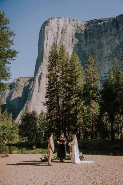 From there, we’ll head to the base of Yosemite Falls for your vows. In the morning light, the mist shimmers and the crowds haven’t yet gathered, leaving the moment private and breathtaking. With the roar of the falls as your soundtrack, your ceremony will feel intimate yet monumental, as though the whole valley is standing witness.