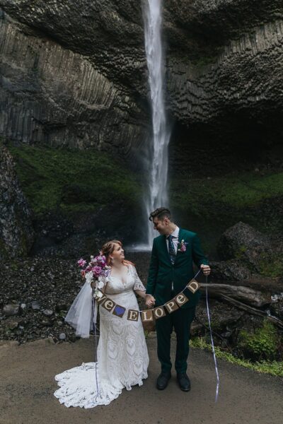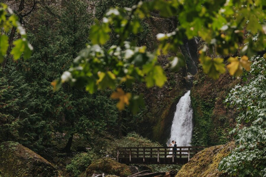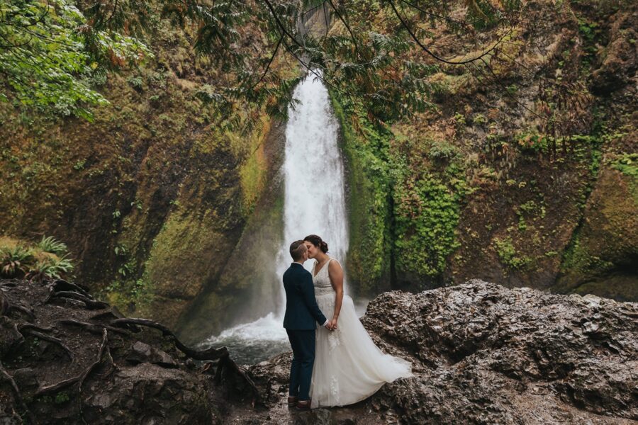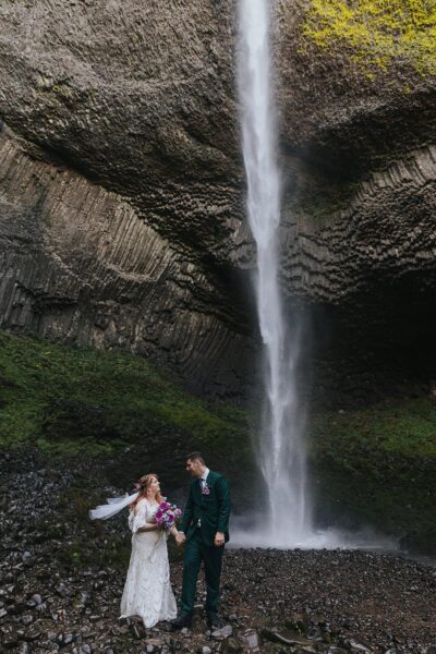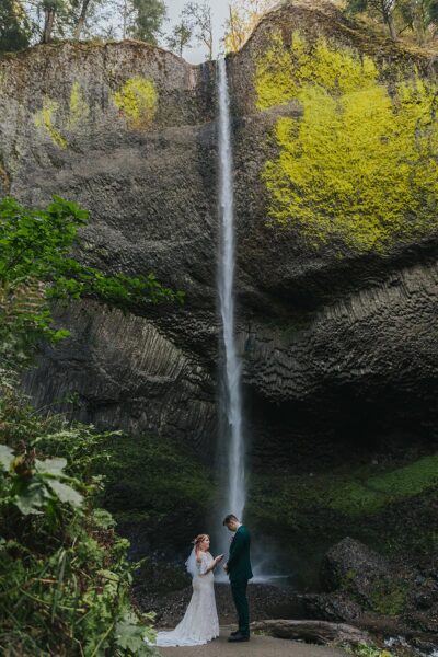 Your day begins beneath the thundering early morning mist of Latourell Falls, where you’ll exchange vows surrounded by towering basalt cliffs and a curtain of rushing water. As the sunlight filters through the spray, it feels like you’ve stepped into your own secluded world — just the two of you, fully immersed in the moment.