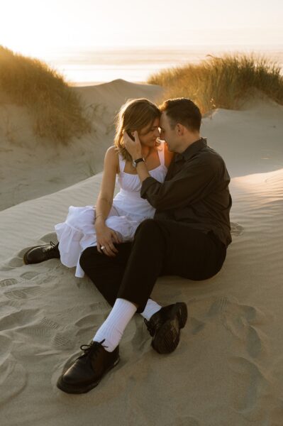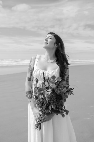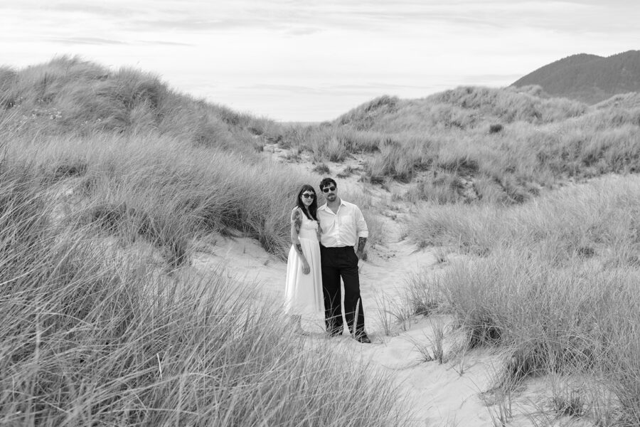 The Oregon coast holds an effortless kind of romance where history, ocean air, and small town charm come together naturally. Your elopement day begins on at nearby coastal lodging. We drive to Nehamlem Beach, a wide and welcoming stretch of sand with reaching sand dunes. With seabirds overhead and the cliffsides visible in the distance, you will exchange vows with the sound of waves rolling in, grounded by the simplicity of the shoreline.