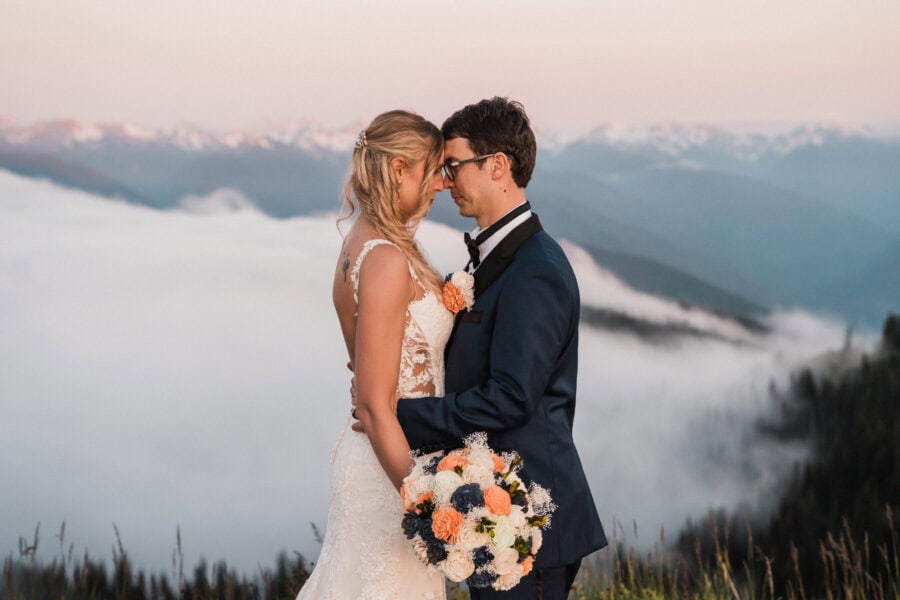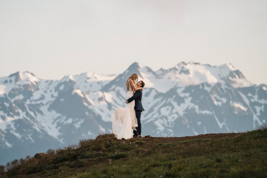 Day two is your private adventure. We’ll explore a nearby forest trail, where towering evergreens and filtered light create a quiet, romantic backdrop for portraits. Then we’ll head to Hurricane Ridge for a golden-hour hike. At the summit, with panoramic mountain views all around, you’ll share private vows—words meant just for the two of you—before raising a glass in a sunset toast. The perfect ending to a celebration that blends the beauty of the coast, the magic of the forest, and the grandeur of the mountains.