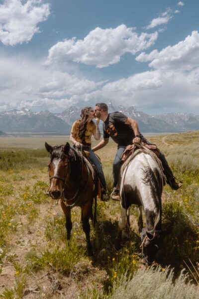Want to throw on your wedding attire again for portraits with the horses? Absolutely. Or keep it relaxed and casual — either way, it’s your story. You’ll get the full cowboy experience: play cornhole, try roping, learn about the land and culture from real wranglers, and watch as the horses roam free at dusk. To end the night, we’ll take a short drive to a nearby lake for a celebratory dip or golden hour portraits that capture the full magic of the day.