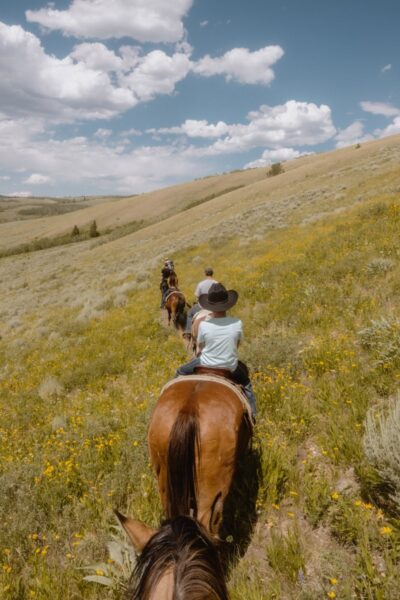 In the late afternoon, we’ll meet at Jackson Hole Outfitters for your next adventure: a private horseback riding experience with a catered dinner overlooking the Tetons. This is your golden hour — slow, joyful, and totally unforgettable. You’ll ride through wild sage fields, enjoy cocktails and locally sourced food with Pepino the beer burro bringing the charm, and soak in live acoustic tunes as the sun sets behind the peaks.