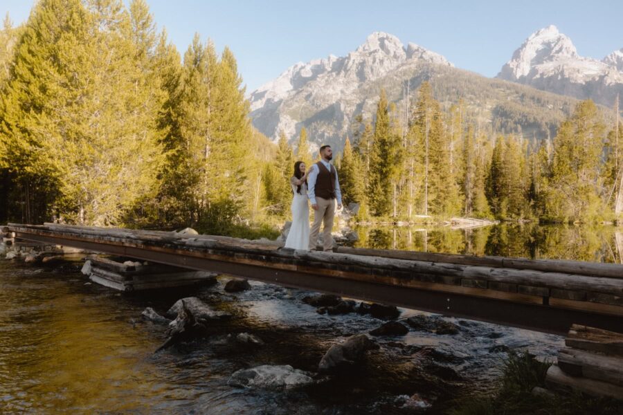 Here, surrounded by forest, reflections, and morning mist, you’ll share a private first look and vow exchange — uninterrupted and deeply personal. Then, with your loved ones gathered, The Traveling Officiant will guide you through a heartfelt ceremony by the lake’s edge. The mountains rise behind you, wildflowers bloom underfoot, and the only sound is wind in the trees and your words carrying over the water.