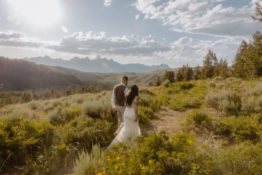 After your ceremony, we’ll explore nearby woodlands and meadows for portraits, soaking in that golden morning light. Think soft moments among pine trees, wildflowers at your feet, and laughter echoing off the peaks. When it’s time, we’ll head back down the trail and part ways for a midday break — time to nap, snack, relax at your Airbnb, or gather with your guests for brunch. This pause lets you recharge and ground yourself for what’s next.