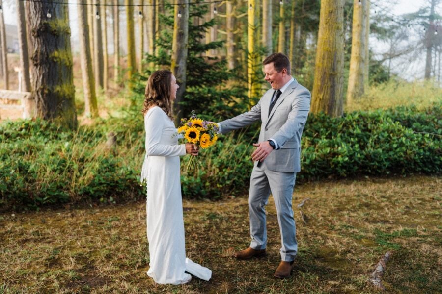 Your experience begins in the late afternoon at your vacation rental in Port Angeles where you’ll spend the time laughing and getting ready with your guests before you share a first look together.