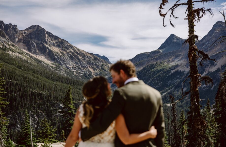 You’ll start the day getting ready with your closest loved ones at one of the cozy inns in Mazama. From there, we’ll depart to nearby Washington Pass Overlook, where we’ll take a short and easy hike to a lookout with epic views. We’ll find a quiet spot for you to exchange vows with your family + friends – and the mountains – surrounding you. After you say “I do”, you’ll enjoy a toast and some light snacks, which you’ll have picked up from the renowned Mazama Store ahead of time (don’t miss the freshly baked sea salt baguette!).