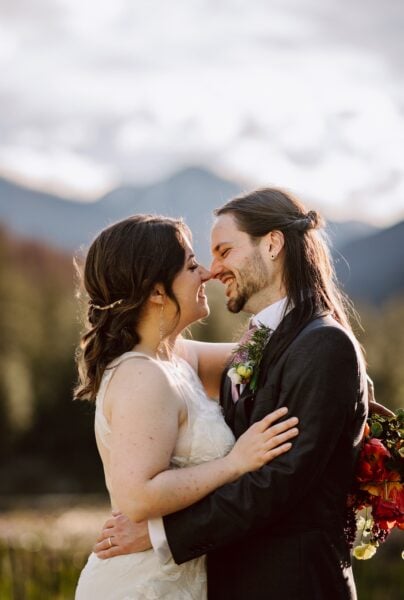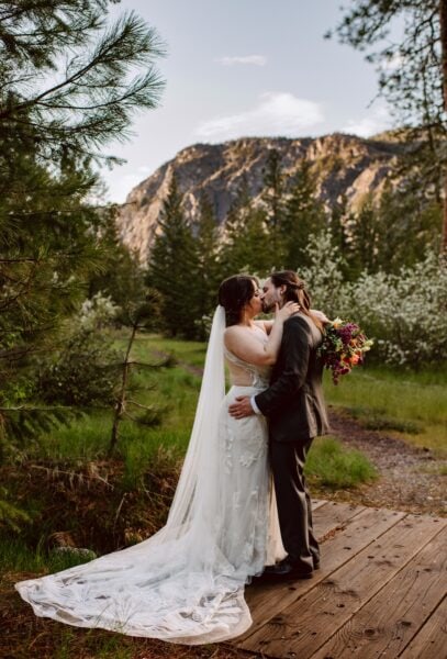 Your loved ones will then head back into town for a break, while you two head off on your own “just us” sunset adventure. Our destination will be Cutthroat Lake, where you’ll hike a low key ~4 mile trail to a gorgeous forested lake set beneath Cutthroat Peak. Here you’ll exchange private vows, enjoy a mini cake cutting together, and share a first dance as the sun sets behind the mountains.