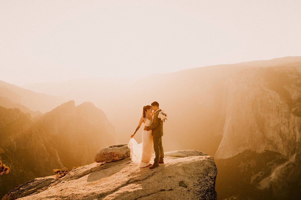 Photographers and couples alike LOVE golden hour wedding portraits. Our elopement photographer members are pros at helping you find the perfect spots to plan a sunrise or sunset elopement. We personally love Yosemite National Park. This sunrise mountain elopement on Mt. Hood is another great spot to check out for some inspiration.