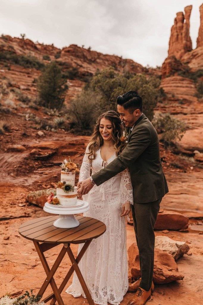 Maybe you both want to keep some wedding traditions in your intimate elopement adventure. A great idea is to bring along a mini wedding cake. We think these cakes are not only gorgeous but awesome for those couples who still want to cut a cake together. If you don’t want to lug a cake around, then consider bringing along another portable treat you both love such as cookies or cupcakes!