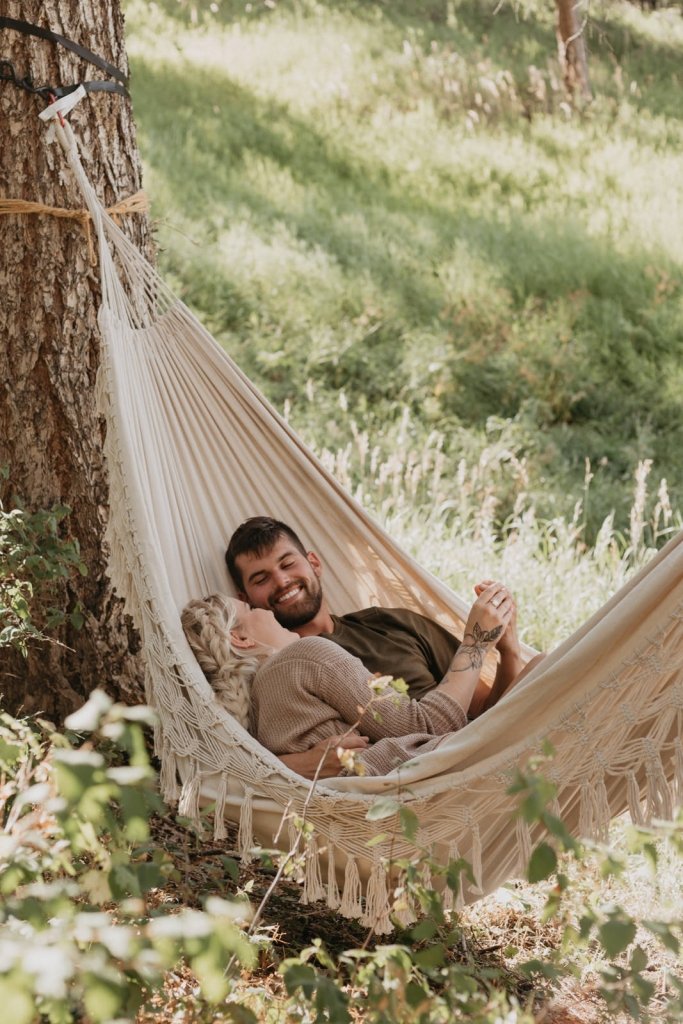 Cuddling is probably one of the best engagement poses we know. The whole point of your engagement session is to celebrate your love together. What better way than to snuggle up close? Some great ideas to incorporate are hammocks, blankets, or just using each other.