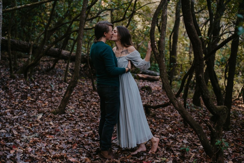 You can’t go wrong with a kiss. Lean in and pucker up because this pose will always be a winner for your engagement photoshoot together.