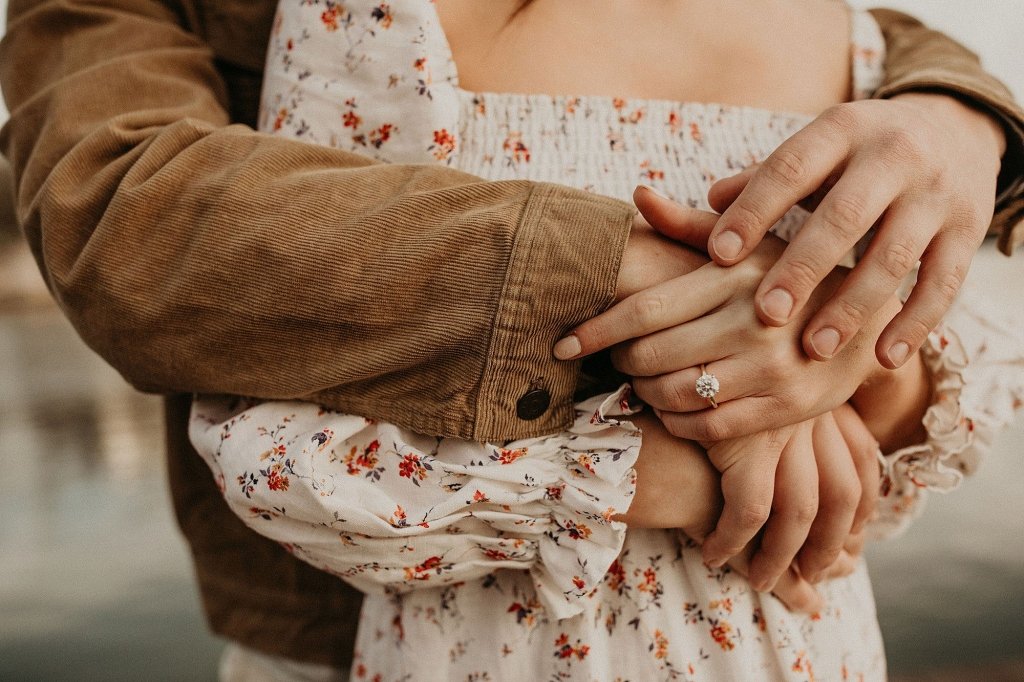 When thinking about what poses you can do during your photo shoot, don’t forget the detail shots. Trust us, detail photos are probably one of our favorite go-to poses. You’ll be able to appreciate your gorgeous engagement ring and focus on little details such as your hands, eyes, etc.