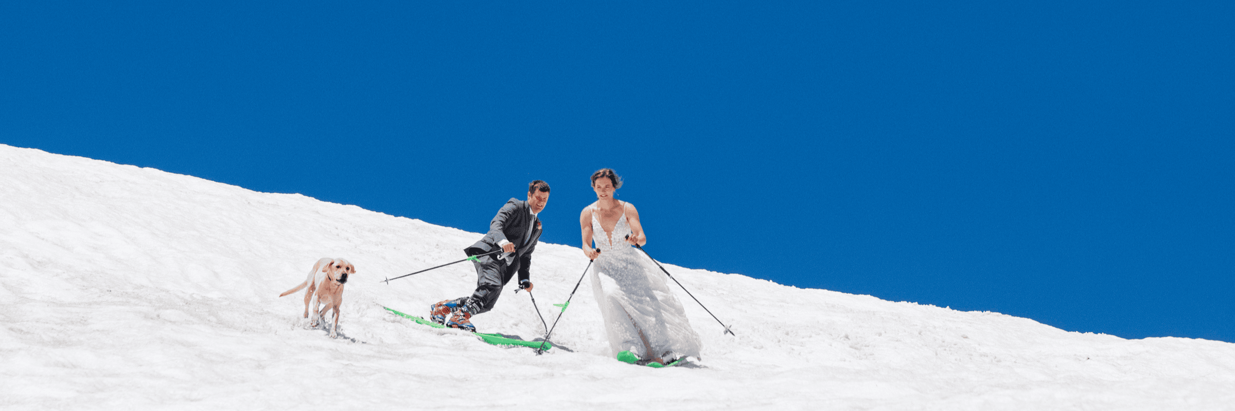 - Afternoon: Ski down in full wedding attire, joined by friends, family, and their dog—ending in a tailgate champagne celebration.