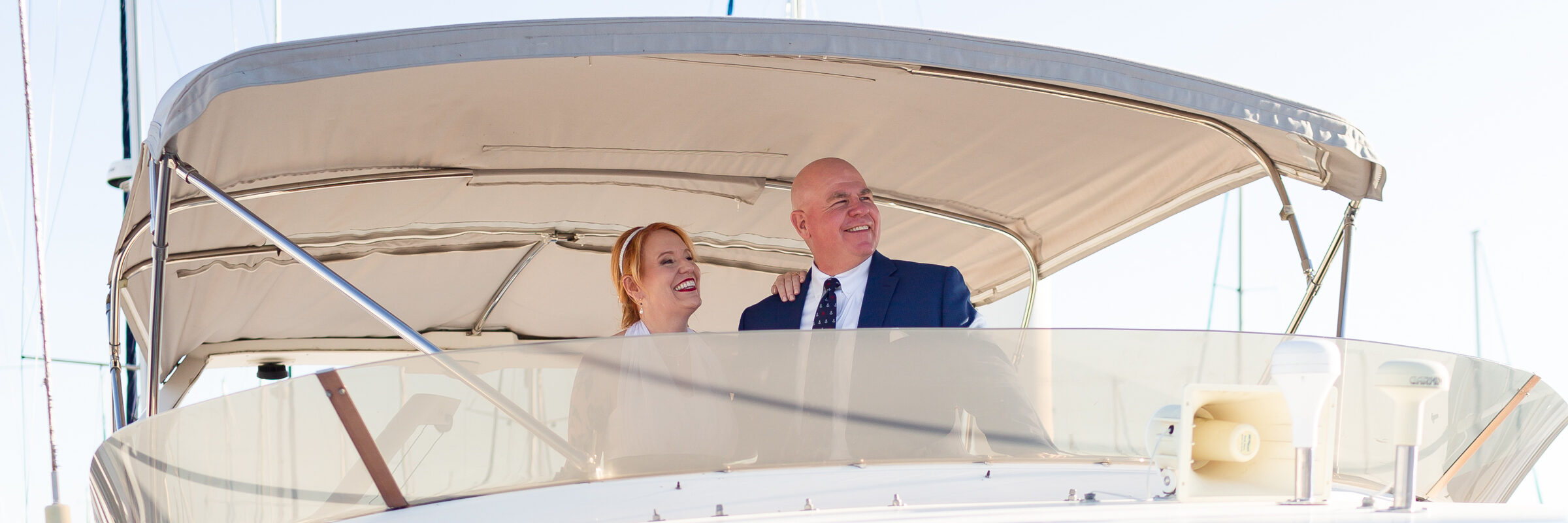 “Jamie and Chris love to explore, and a traditional wedding or courthouse elopement was nowhere on their radar. Since Chris is a boat guy and has his own sailboat, they decided to get married on a yacht!