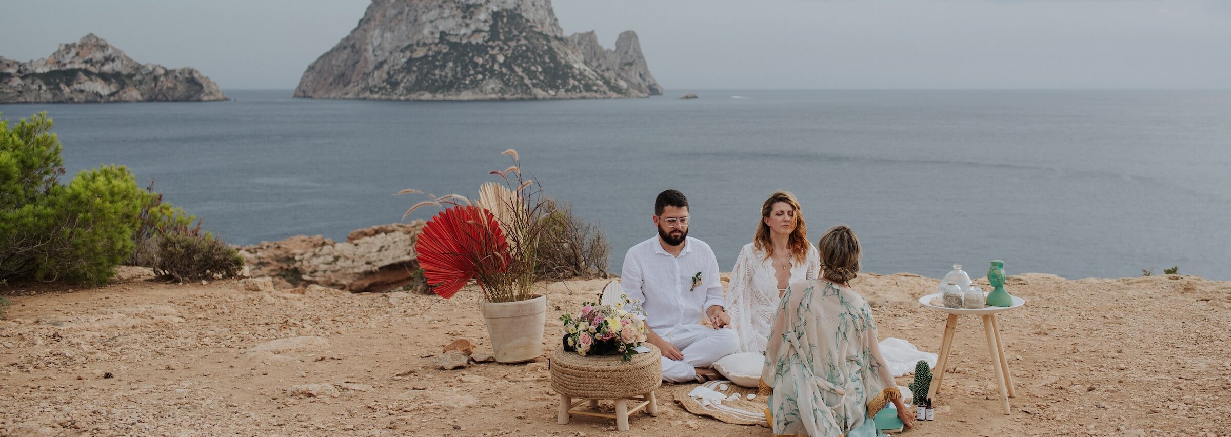 Maddalena and Davide chose the mystical Es Vedrà in Ibiza as the place to celebrate their love. This island is in their hearts, filled with cherished memories. Their ceremony embraced the natural energy of this location, guided by the gentle touch of their celebrant. Every moment reflected their deep bond, from heartfelt vows to a sand and red ribbon ritual. Get all the details below.