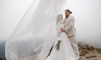 Their elopement brought together fog covered mountains, quiet rest, and a spirited lake adventure, creating a day that reflected the way they move through life with presence, humor, and heart.