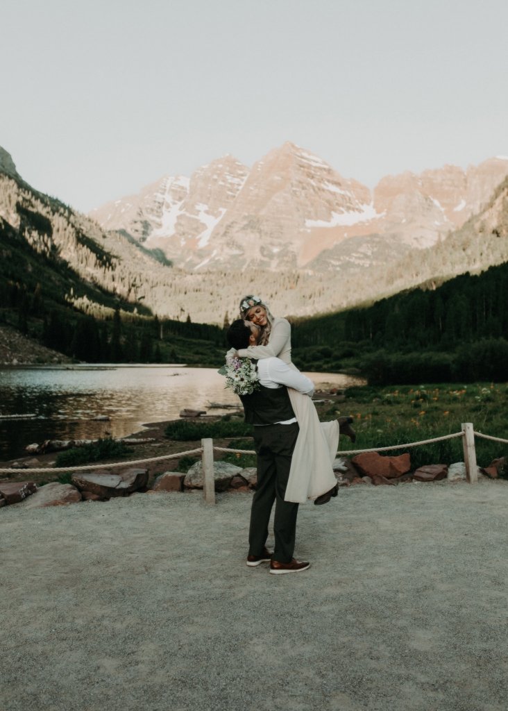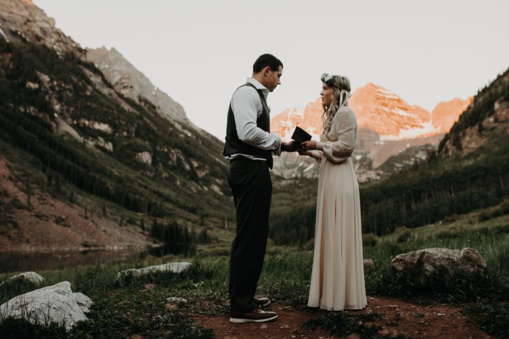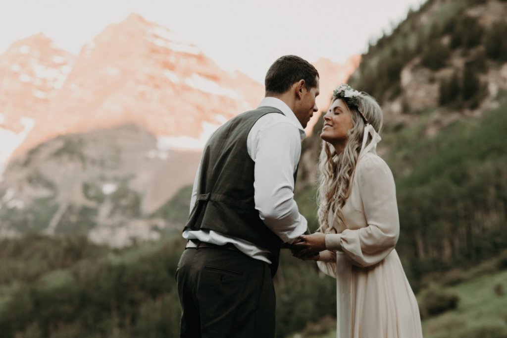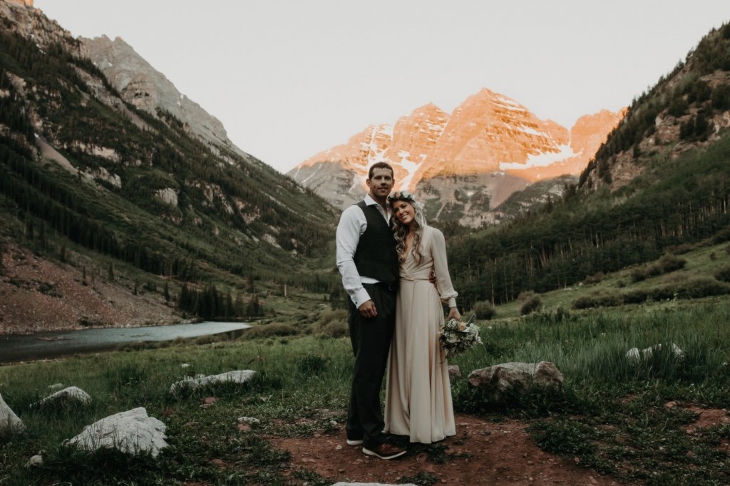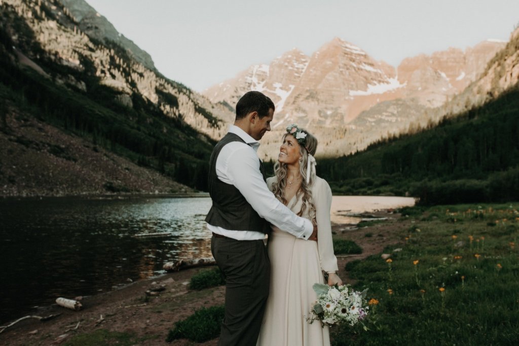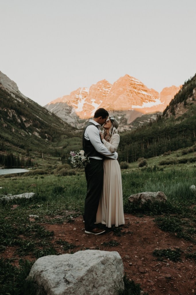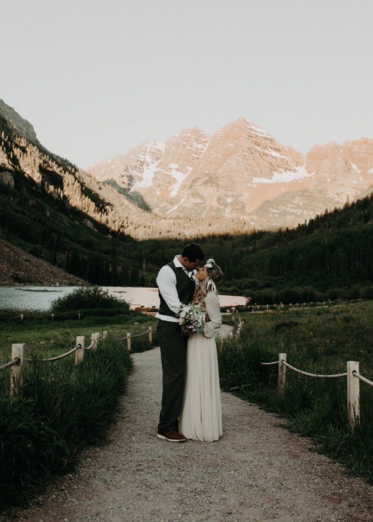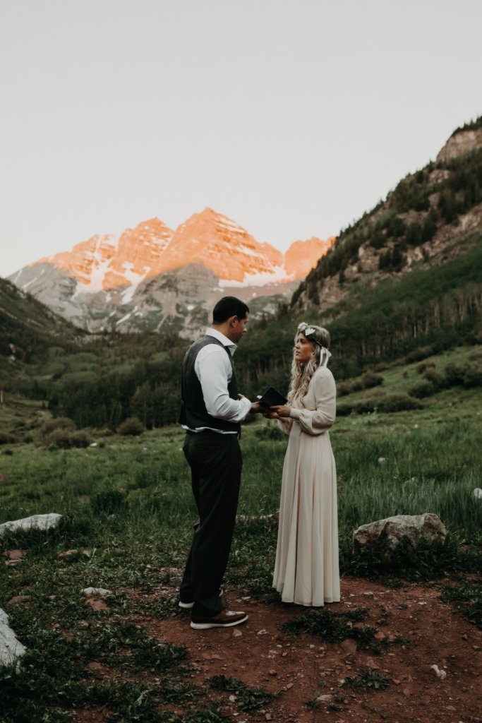Ashtyn and Tony’s vow renewal at Maroon Bells in Colorado was one to remember. They arrived right before the sun began to hit the mountain peaks in the background as they exchanged vows.
