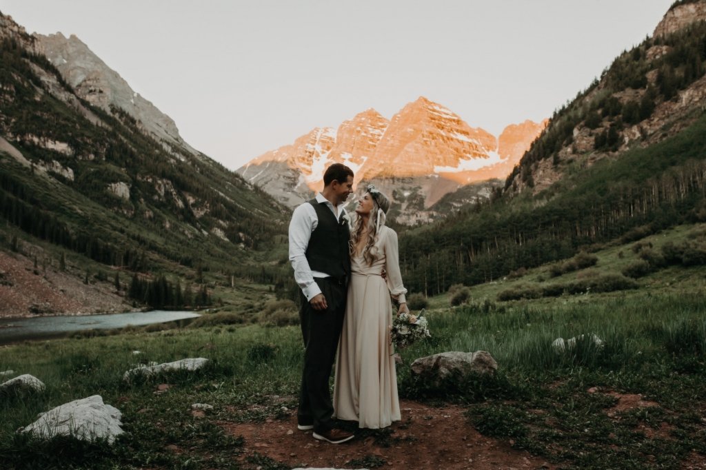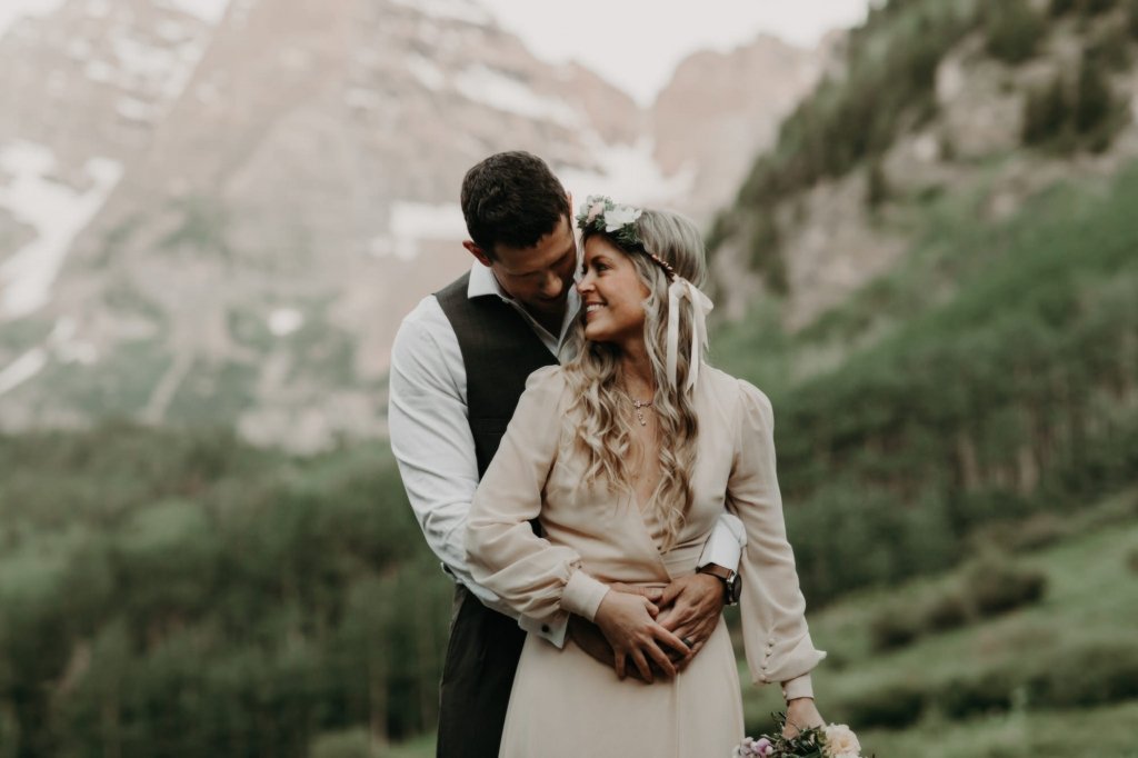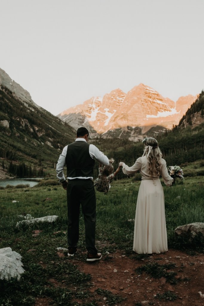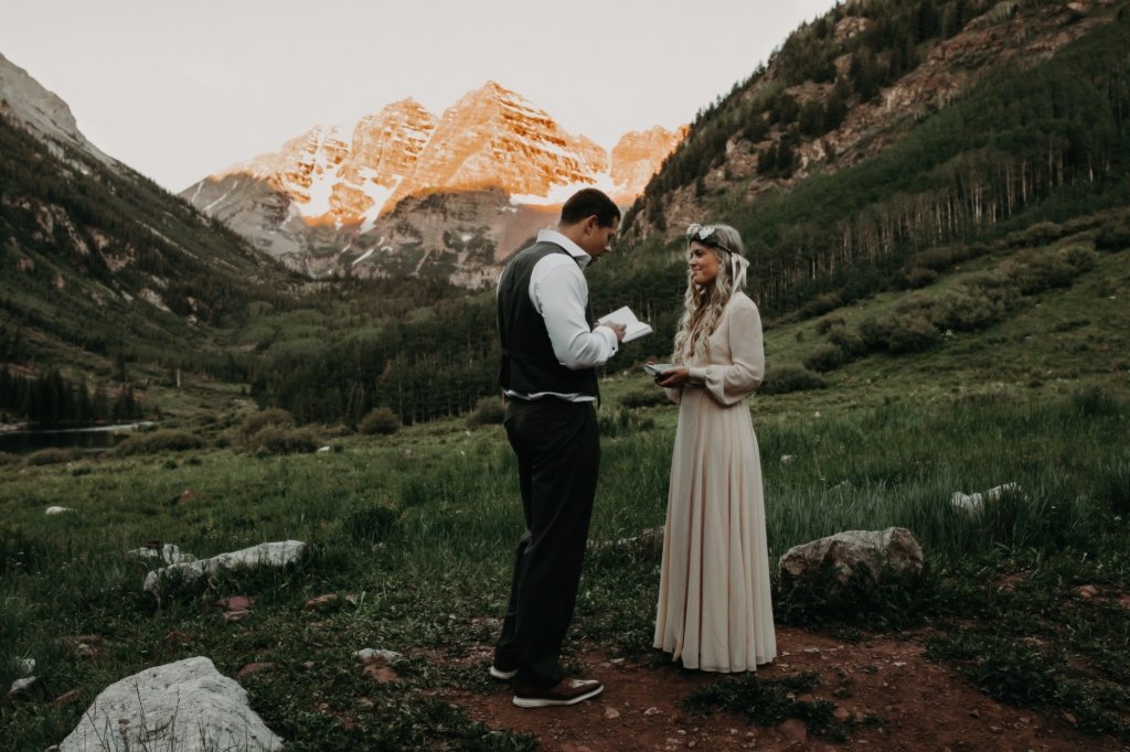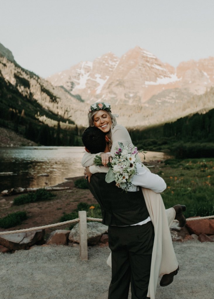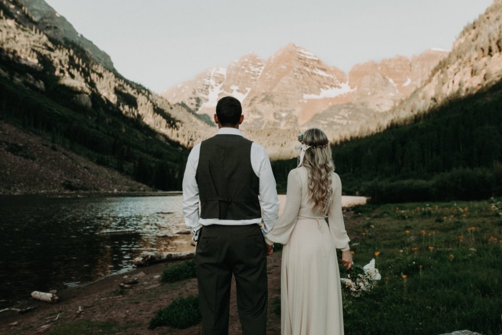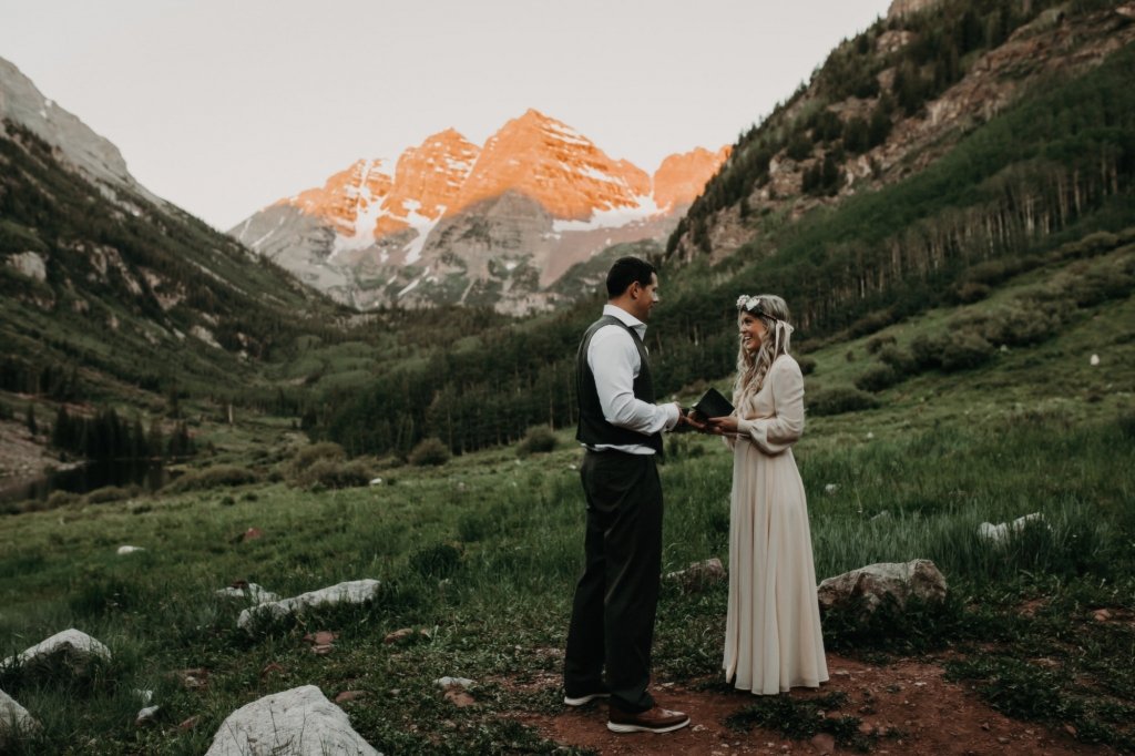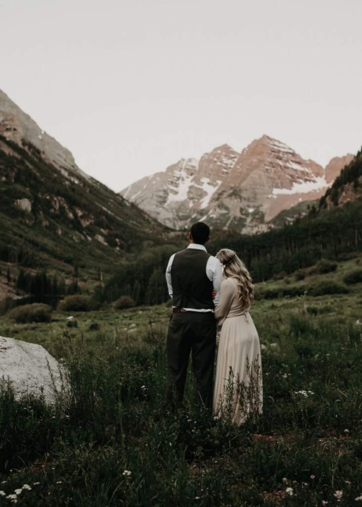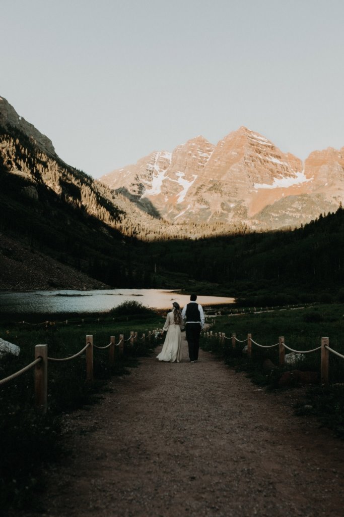 Ashtyn and Tony’s vow renewal at Maroon Bells in Colorado was one to remember. They arrived right before the sun began to hit the mountain peaks in the background as they exchanged vows.