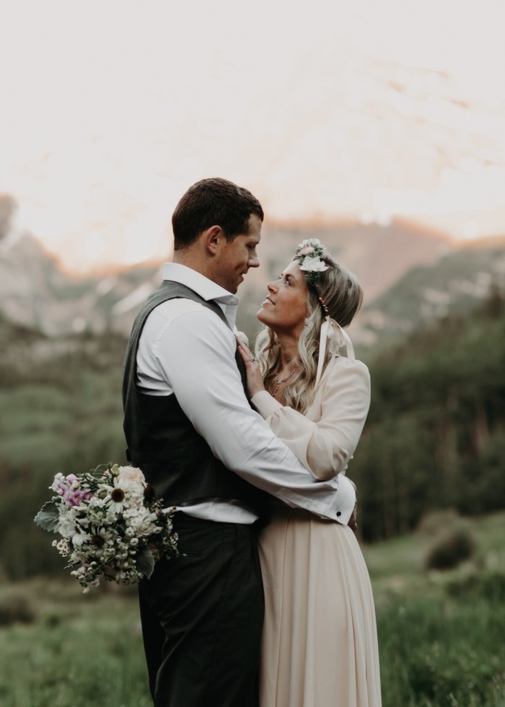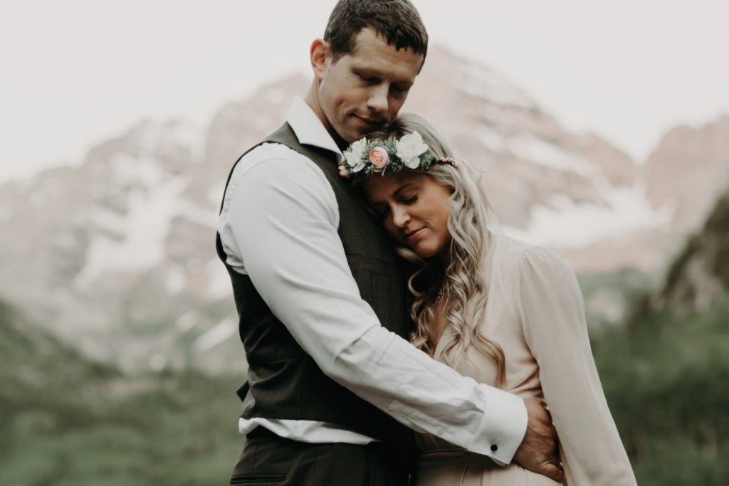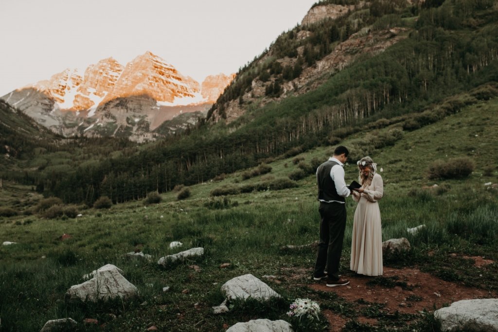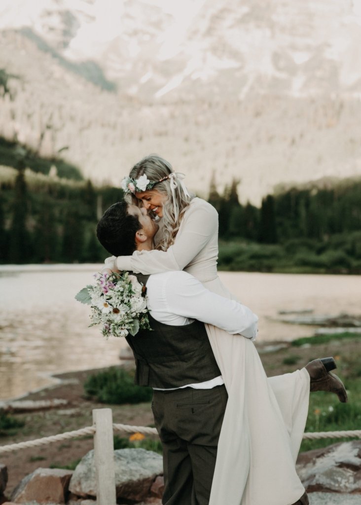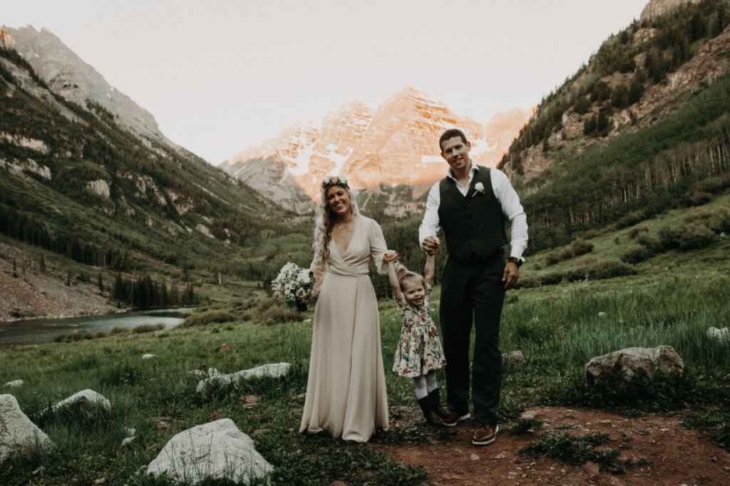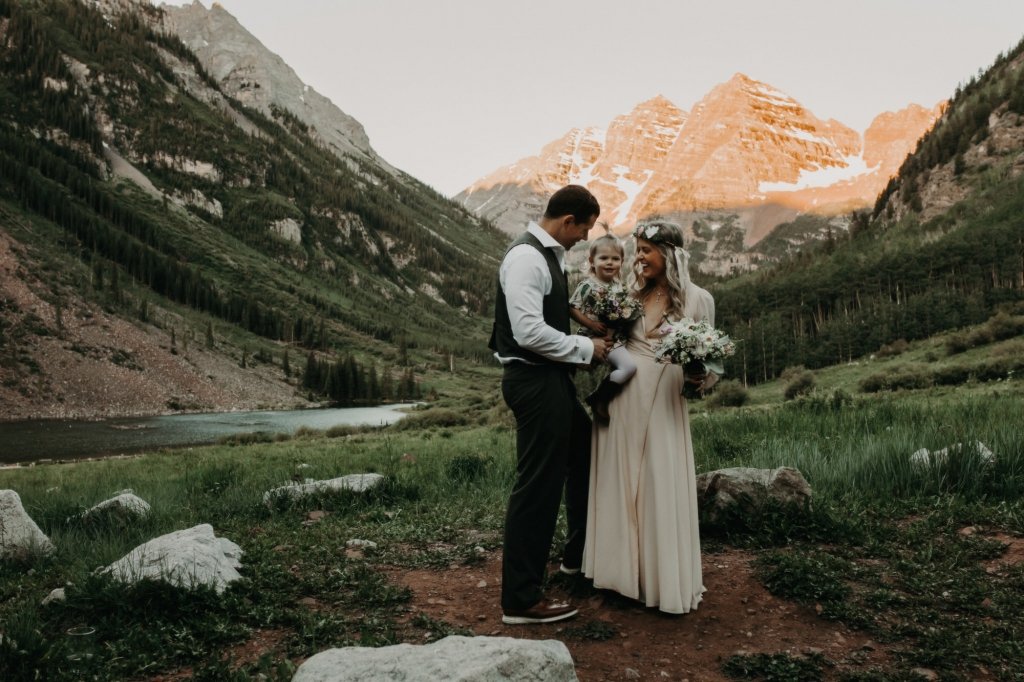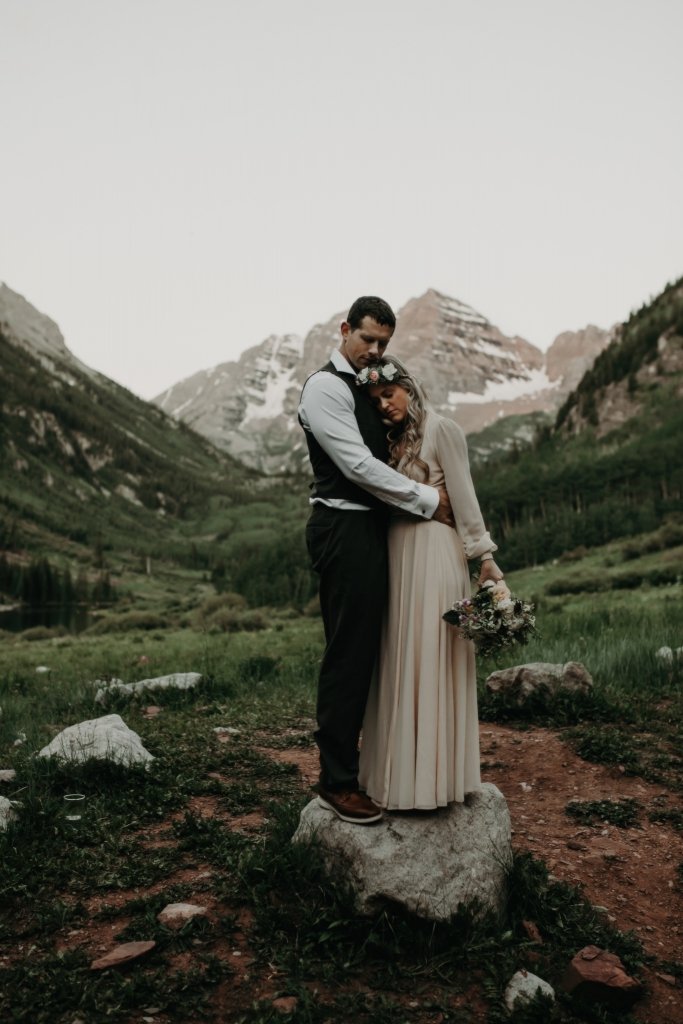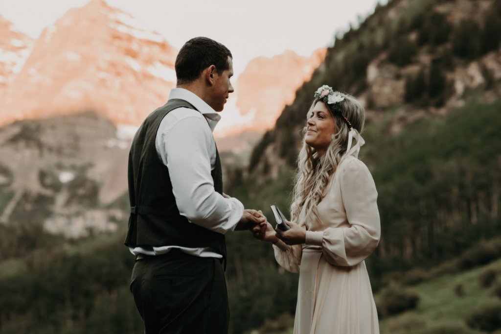 Ashtyn and Tony’s vow renewal at Maroon Bells in Colorado was one to remember. They arrived right before the sun began to hit the mountain peaks in the background as they exchanged vows.