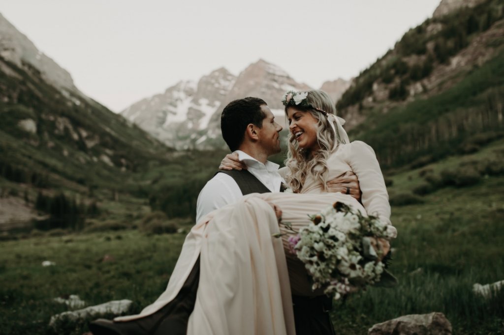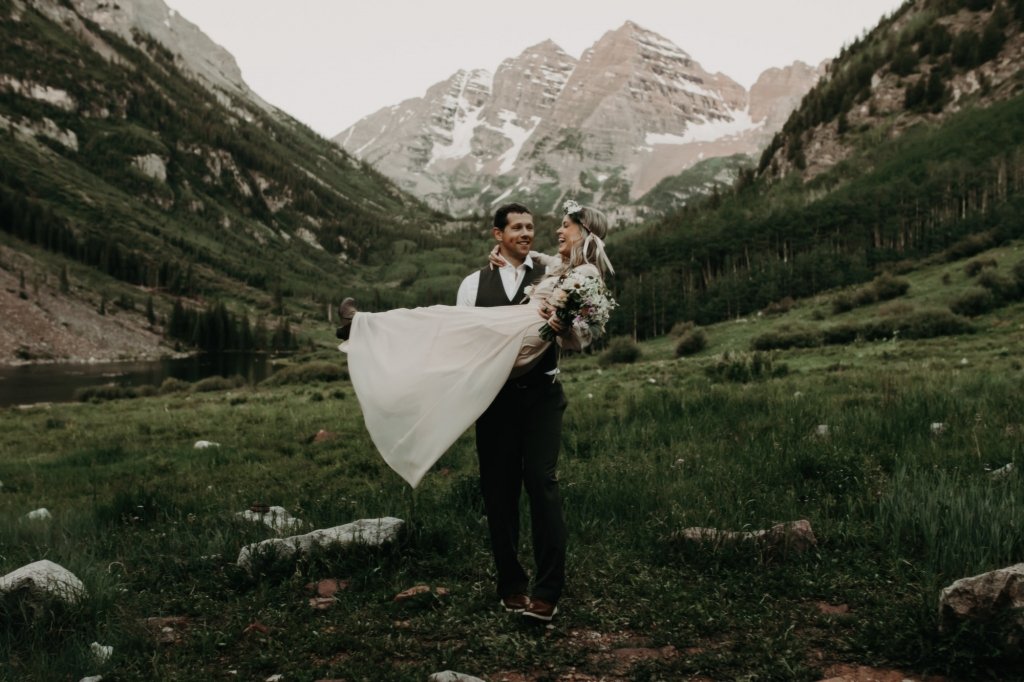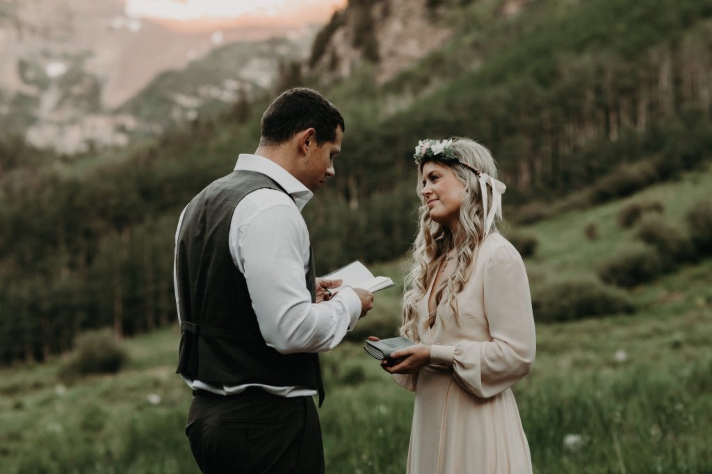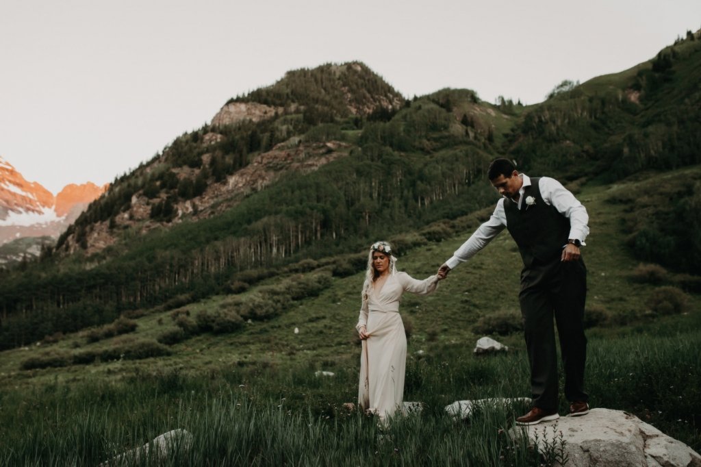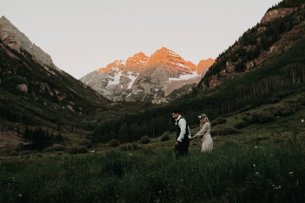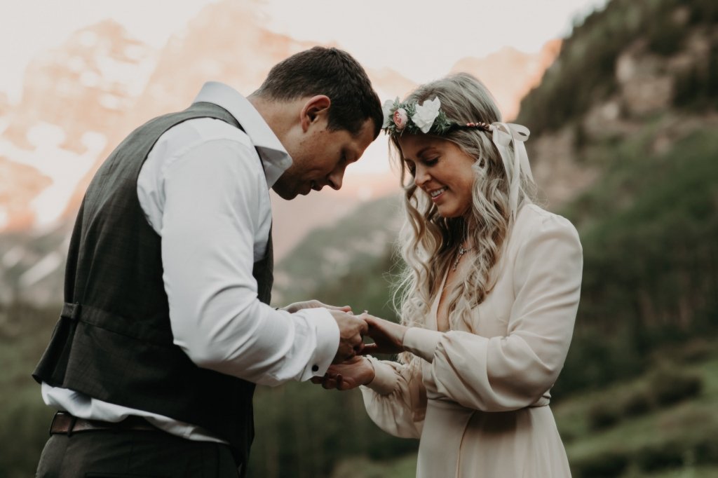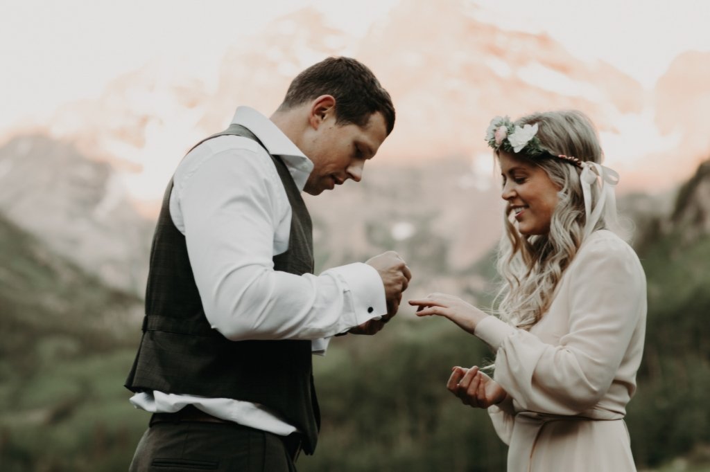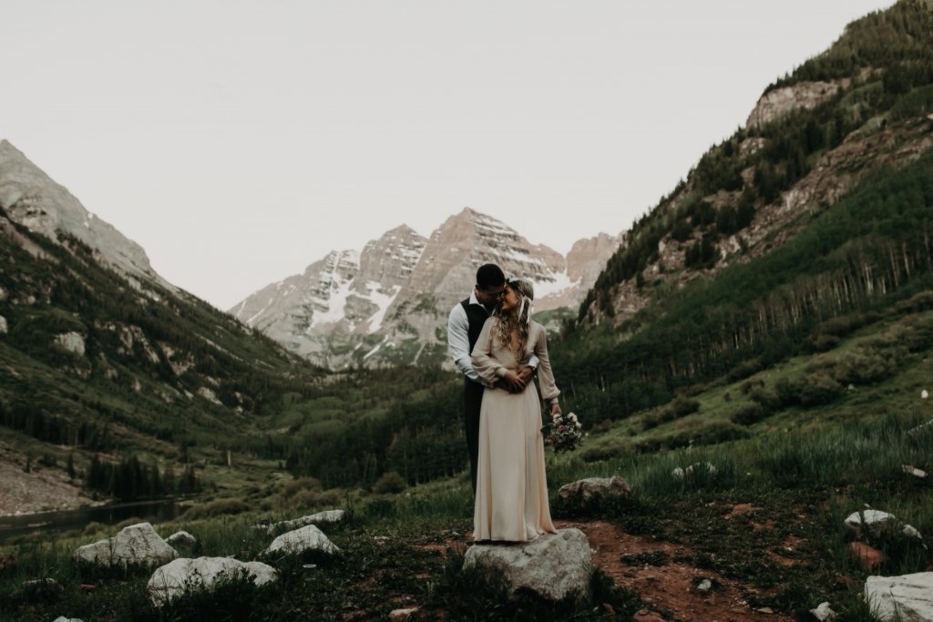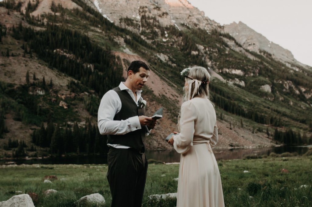 Ashtyn and Tony’s vow renewal at Maroon Bells in Colorado was one to remember. They arrived right before the sun began to hit the mountain peaks in the background as they exchanged vows.