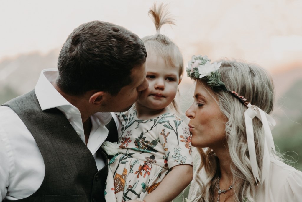 “Getting to say our vows outside in the most magical place was just so special. There is something about doing something so simple in such a beautiful way that allowed us to focus on our vows, reflect on our marriage, and soak in how far we have come. And of course, our daughter was able to be there, which just made the whole experience perfect.” [Ashtyn]