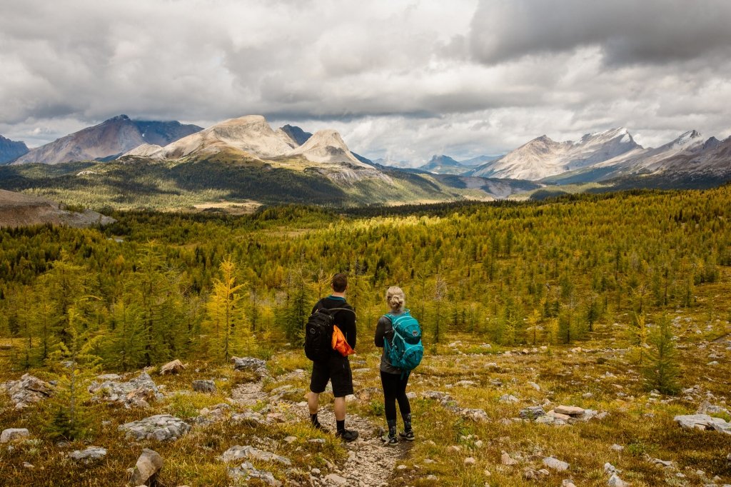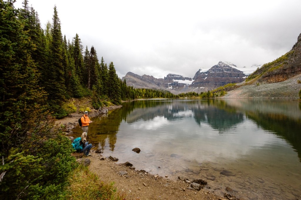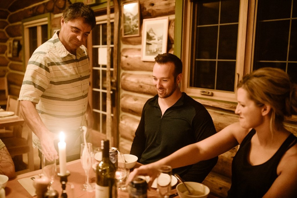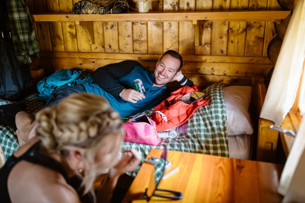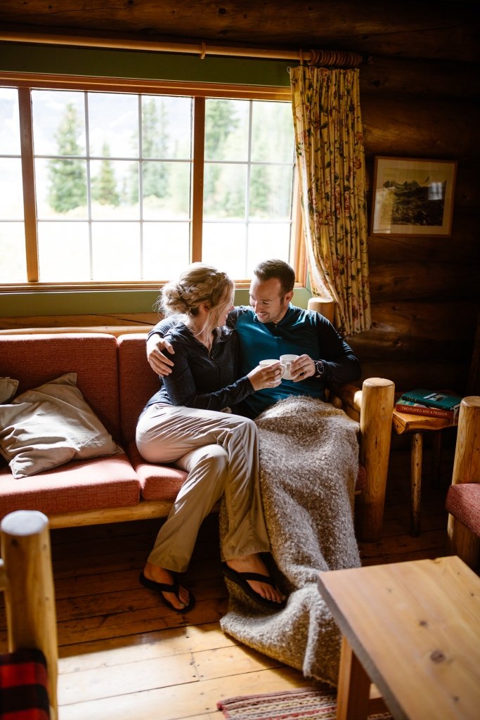 This couple took a helicopter to the base of the lodge, originally built in 1928. There, the two got ready and hiked to a picturesque viewpoint overlooking Mt. Assiniboine, Sunburst Peak, and Cerulean Lake.