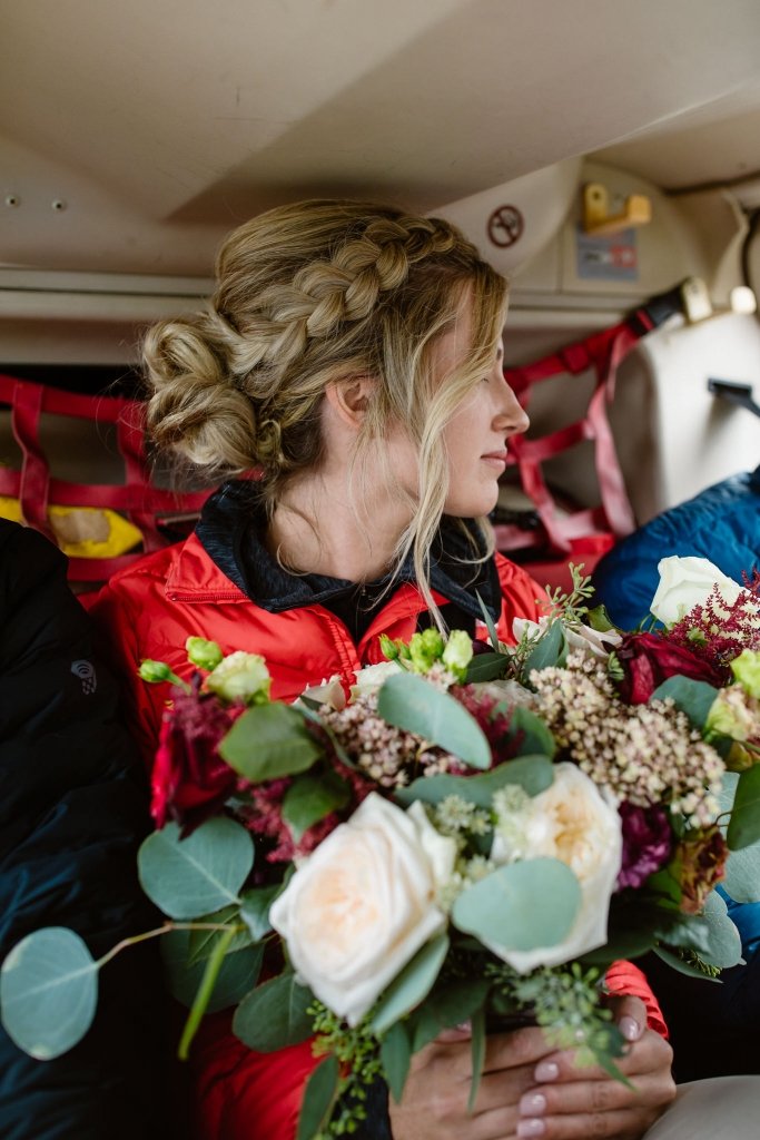 - When packing, be prepared for all weather conditions! Even in summer, British Columbia’s weather is as wild as the landscape, so bringing multiple layers like a down jacket and a rain shell is key to staying warm during your elopement.