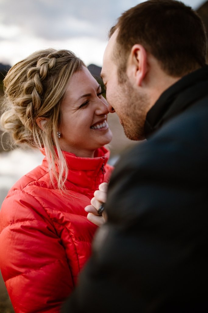 Kristin and Justin eloped at Mt. Assiniboine Provincial Park. It is also the highest peak in the Southern Continental Ranges of the glorious Canadian Rockies. Eloping in BC allows you to elope somewhere epic as these two did. There are gorgeous cascading waterfalls, turquoise lakes, and tall snow-capped mountains to explore. Popular spots here include Banff, Jasper, and Canmore, Alberta. We love this BC location to elope because there is such a variety of views to enjoy. You can easily plan a hiking elopement like Kristin and Justin, or you can explore the dense evergreen forests together.