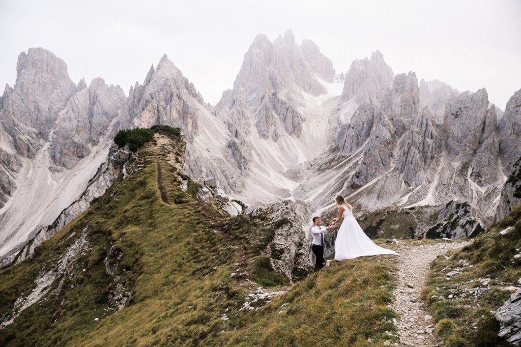 The Dolomites are also on UNESCO‘s list of the world’s protected natural paradises and are known as the most beautiful mountains you can see in the world. There are 18 peaks here which rise above 3,000 meters. Some popular areas to visit include Lago di Brais (Lake Brais) and Cortina D’Ampezzo, a small mountain town. We also love it when couples turn their elopements into a multi-day adventure. Talk to your photographer about what options are best for your elopement vision.