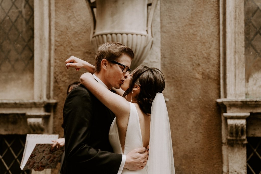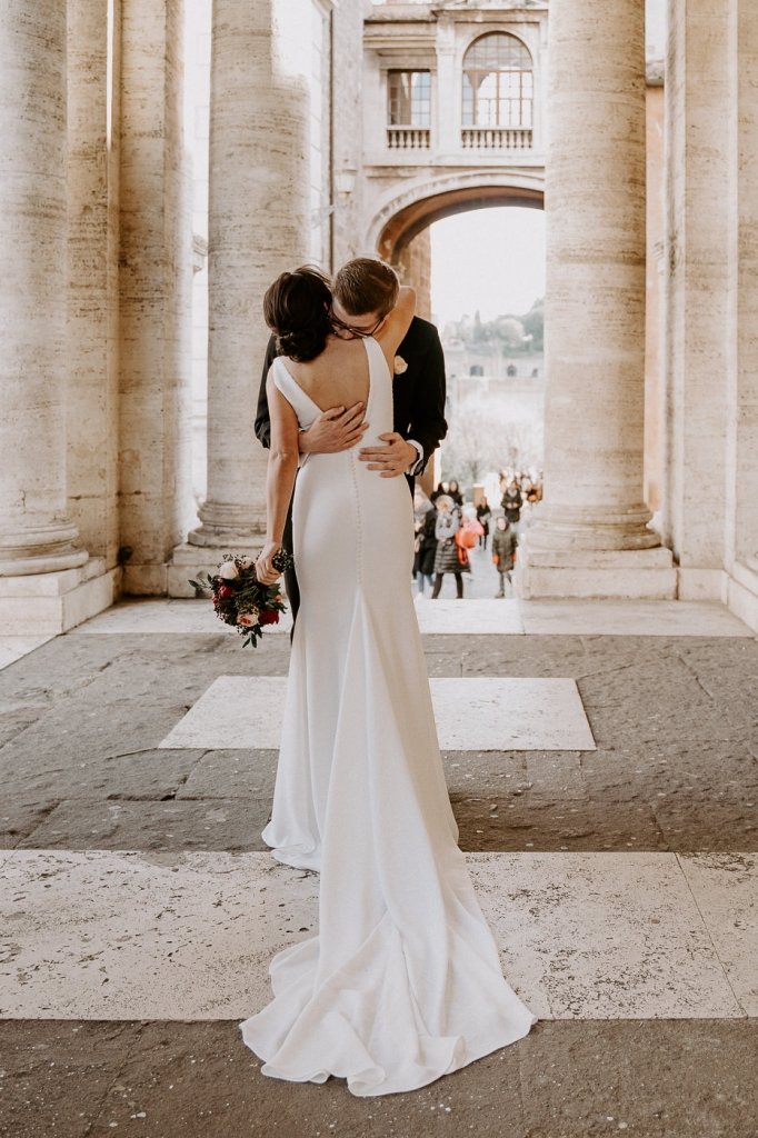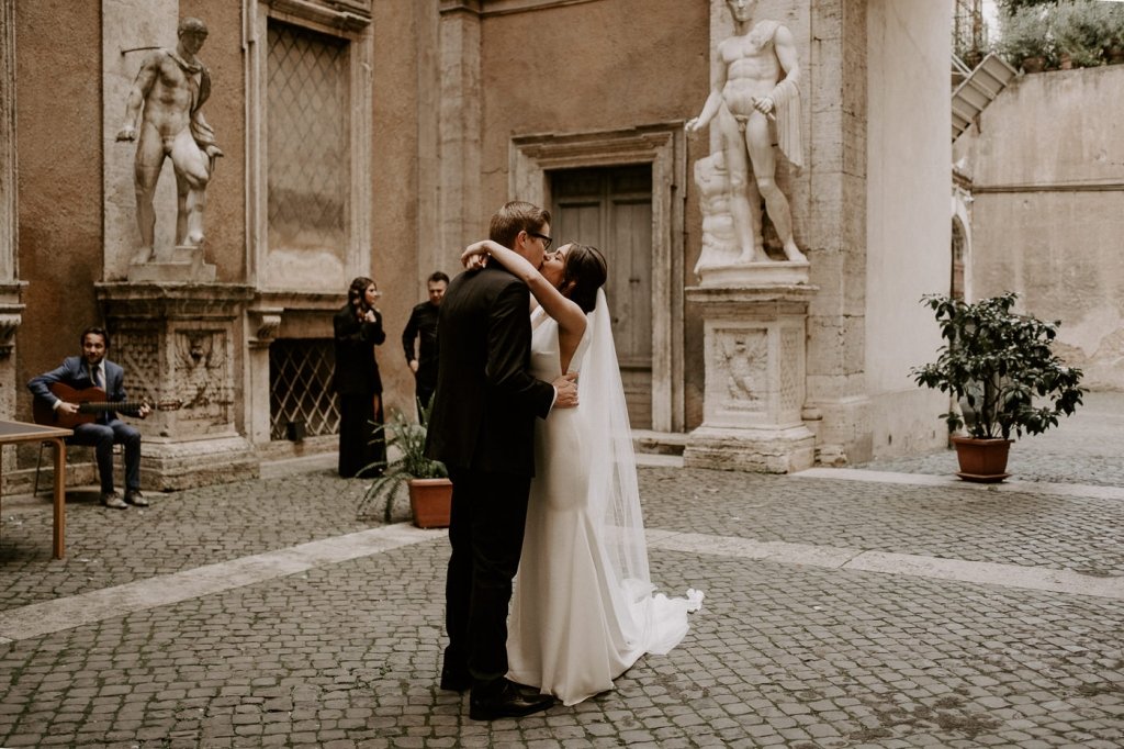 Palazzo Mattei was just the perfect place for Alissa and Andrew’s romantic Italy elopement. We love their intimate vows, and we also loved how they shared their first dance as a guitarist played. This elopement adventure also incorporated wedding portraits at Capitoline Hill and a secret terrace, where they admired the most romantic sunset on the ancient Roman ruins.
