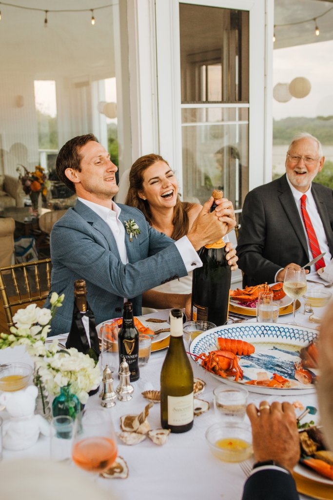 Some couples plan a seated dinner with catering or a private chef (if their party list is small). You can also have a potluck-style party or even a BBQ with huge coolers of your favorite beers.