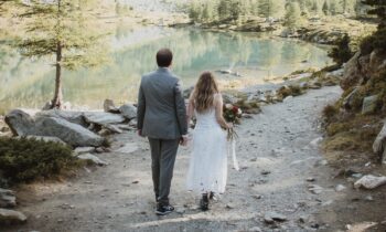 Molly and Duncan’s elopement unfolded across two very different worlds inside Olympic National Park. Their day began in the soft fog at Hurricane Ridge where the mountains stayed hidden and the landscape felt quiet and close. They exchanged heartfelt vows in the stillness, shared a hand fasting ceremony, and spent the early morning wandering through wildflower meadows with deer moving gently around them.