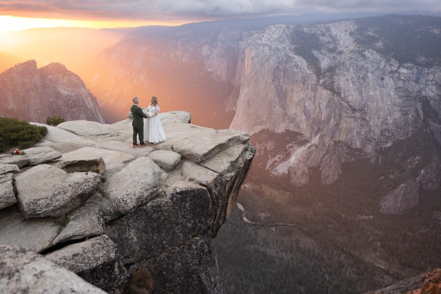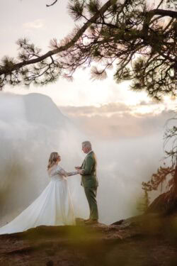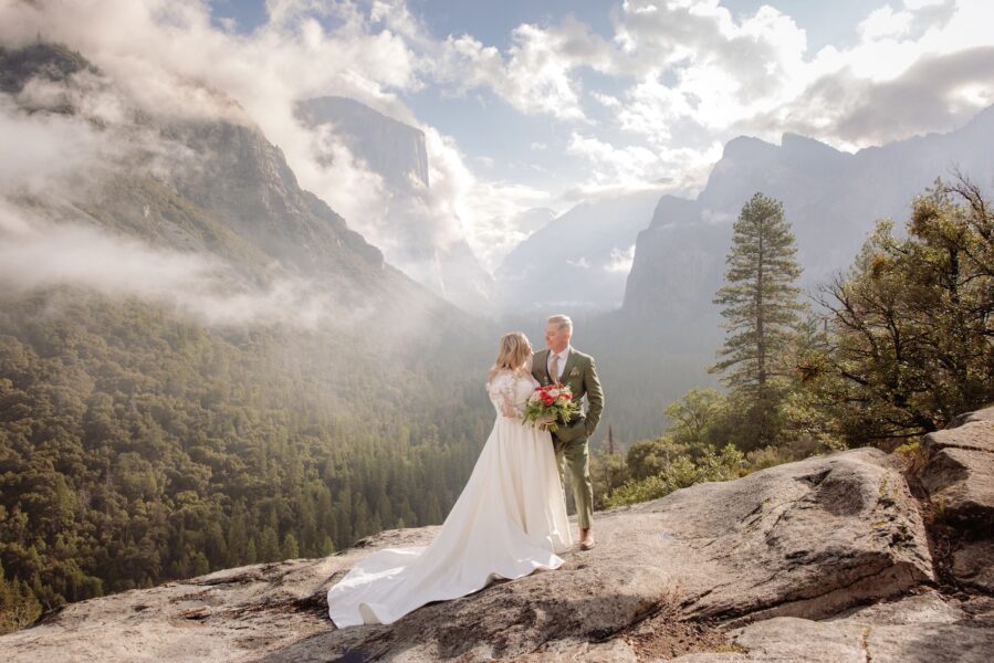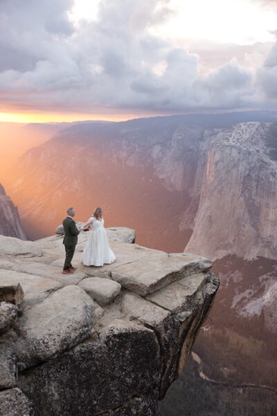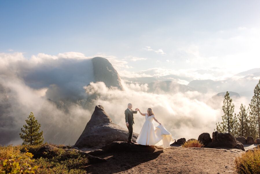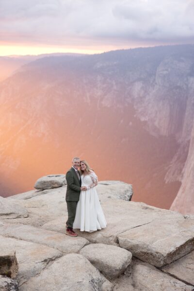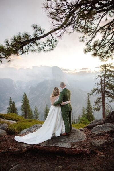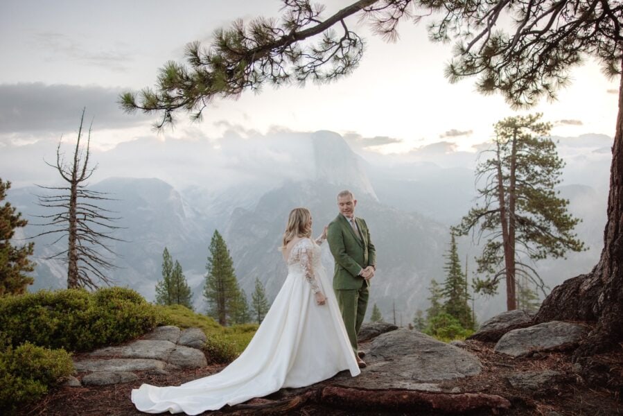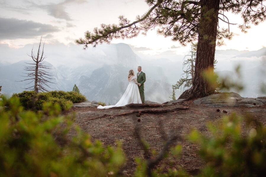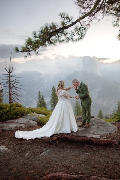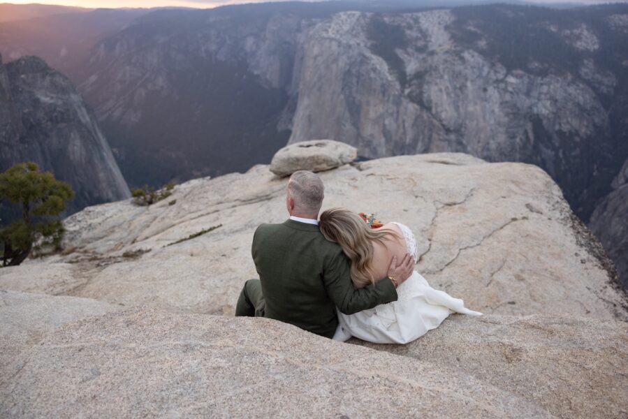 After their vows, they stayed at Glacier Point for portraits, leaning into the expansive scale they had hoped for when they first envisioned Yosemite.